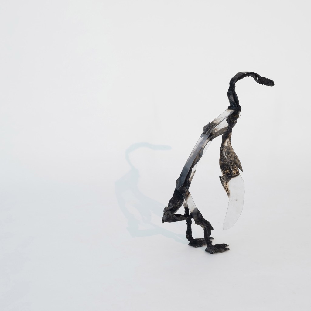 Polycarbonate, partially charred.